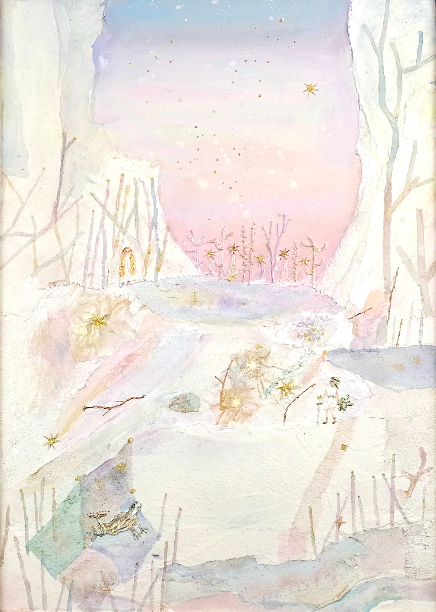 素材: パネル、綿布、アクリル絵の具、ペーパーペースト、モデリングペースト