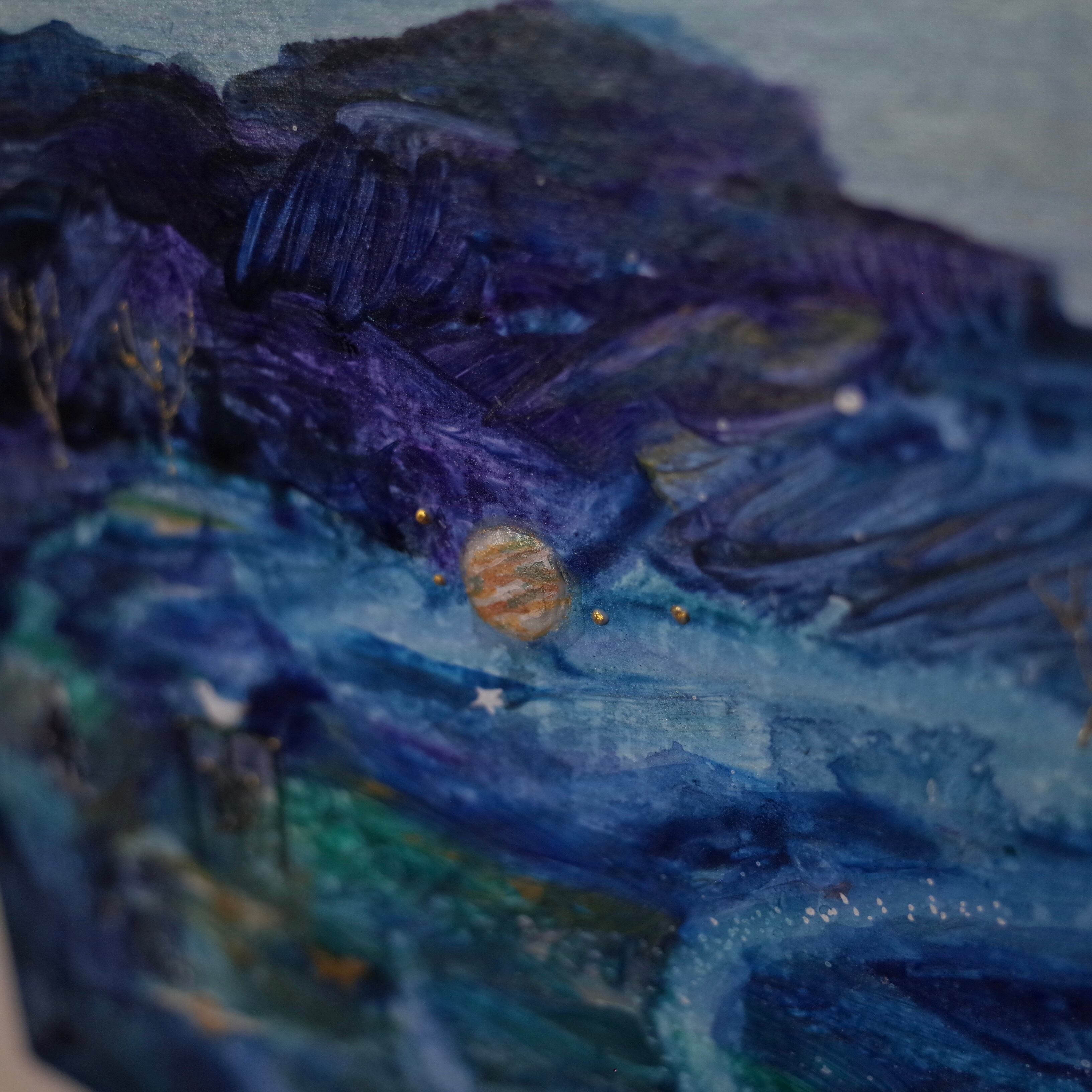 素材: パネル、綿布、アクリル絵の具、モデリングペースト、水晶末